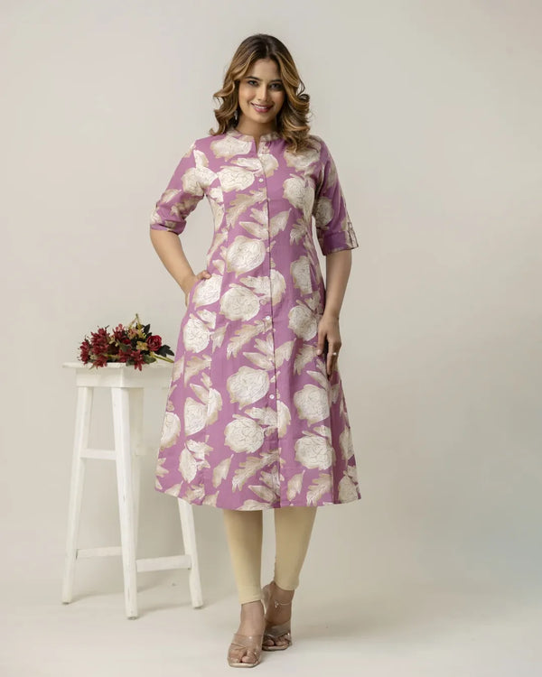 Embrace graceful everyday style with The 'Lavanya' Lavender Meadow Kurti's, a charming...
