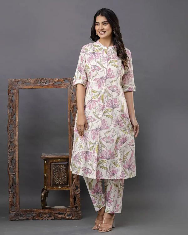 The 'Lavanya' Floral Print Kurta Set, a vibrant piece from our kurta...