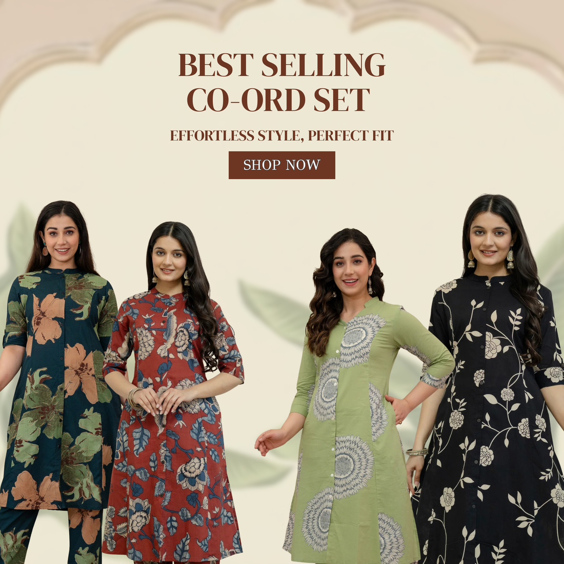 Cotton A-Line Co-ord SetFabric: Soft & breathable Pure CottonPattern: A-Line / Princess CutNeckline: Elegant Mandarin...