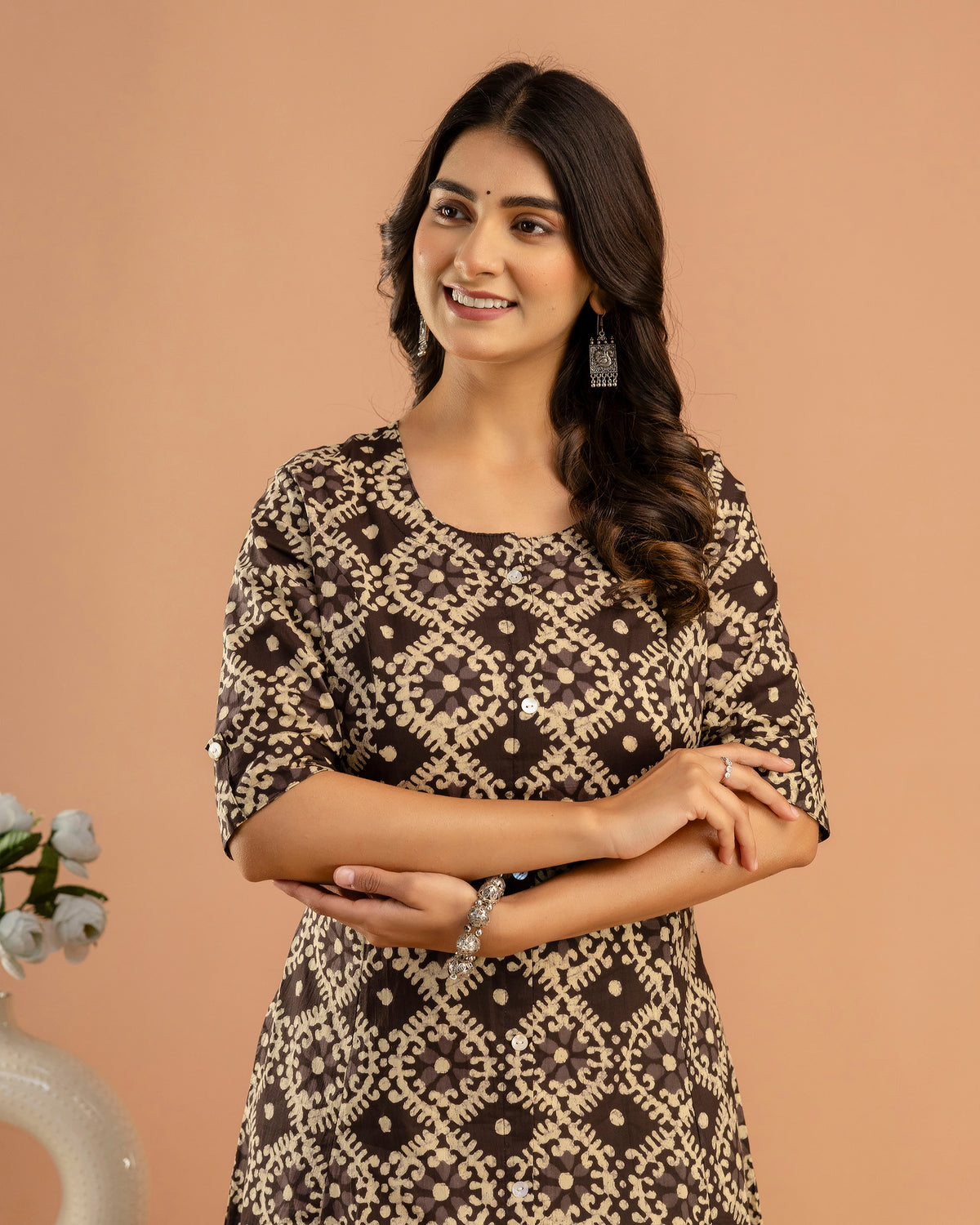 The 'Advika' Brown Geometric A-Line Kurta - 38