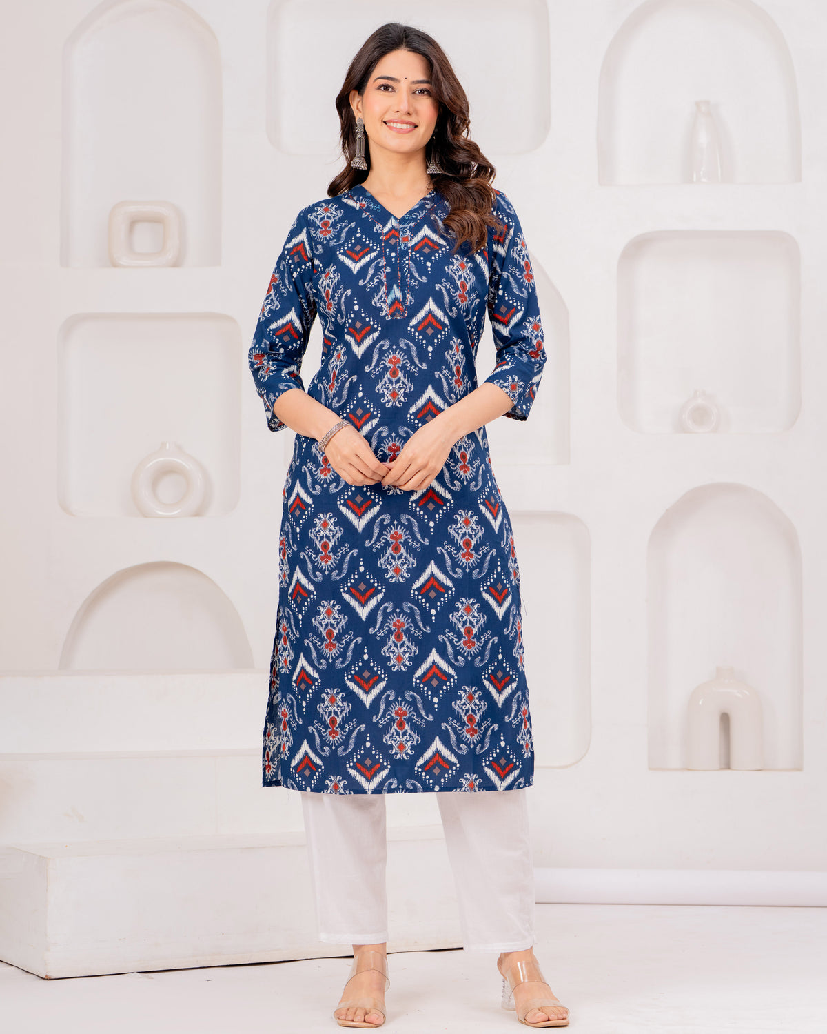 Most Jivika Kurta Sets and Suits are made from premium, breathable cotton, or high-quality cotton blends designed for all-day comfort and a soft feel. This is ideal for transitional weather and hot climates. The fabric type for each specific product is detailed on its page.