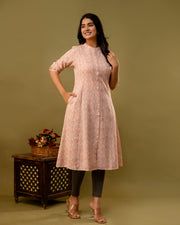 The 'Inaya' Peach Geometric A-Line Kurta - 38