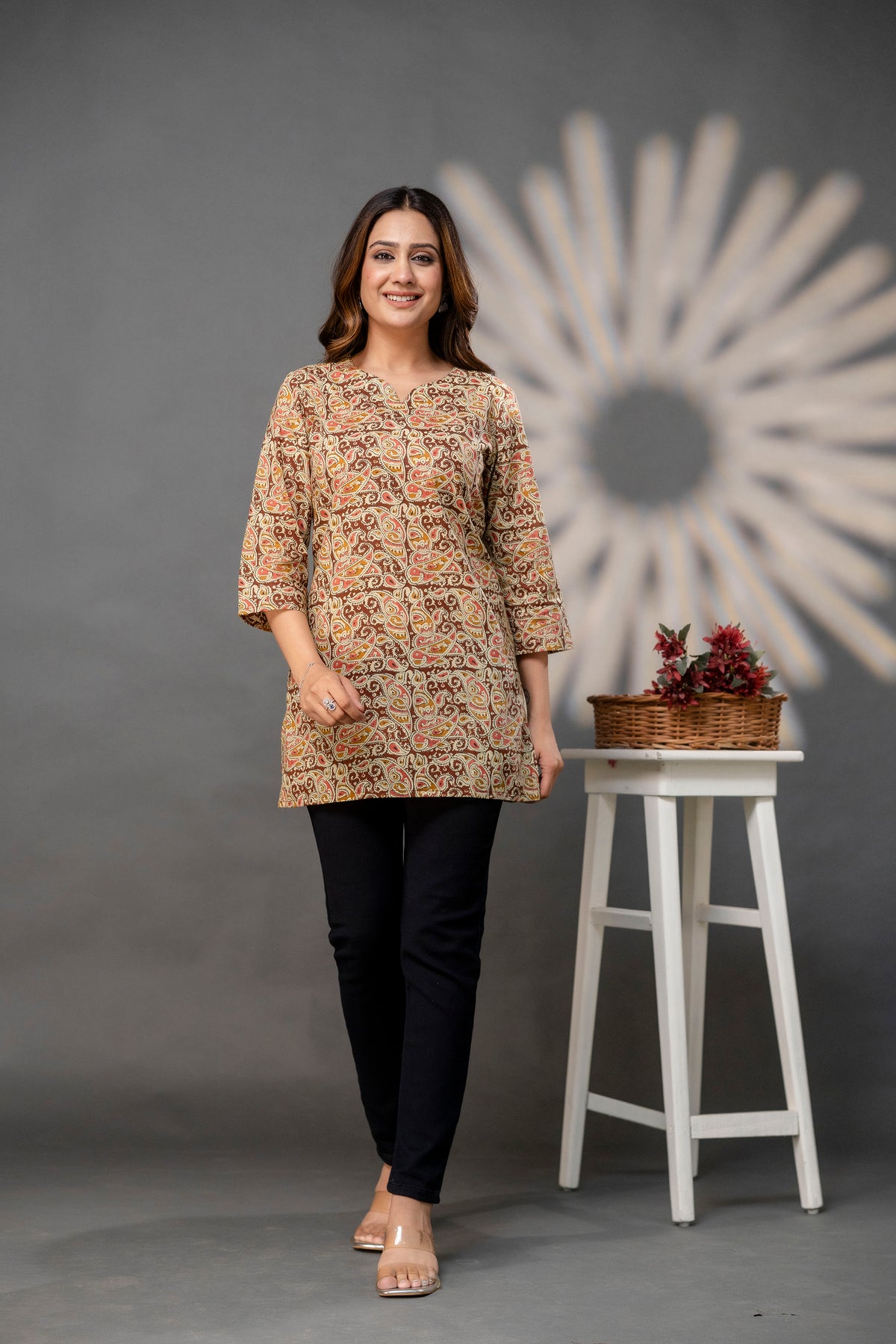 The 'Kavya' Earthy Paisley Short Top - 38