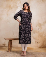 The 'Kaya' Midnight Sunflower Straight Kurta - 38