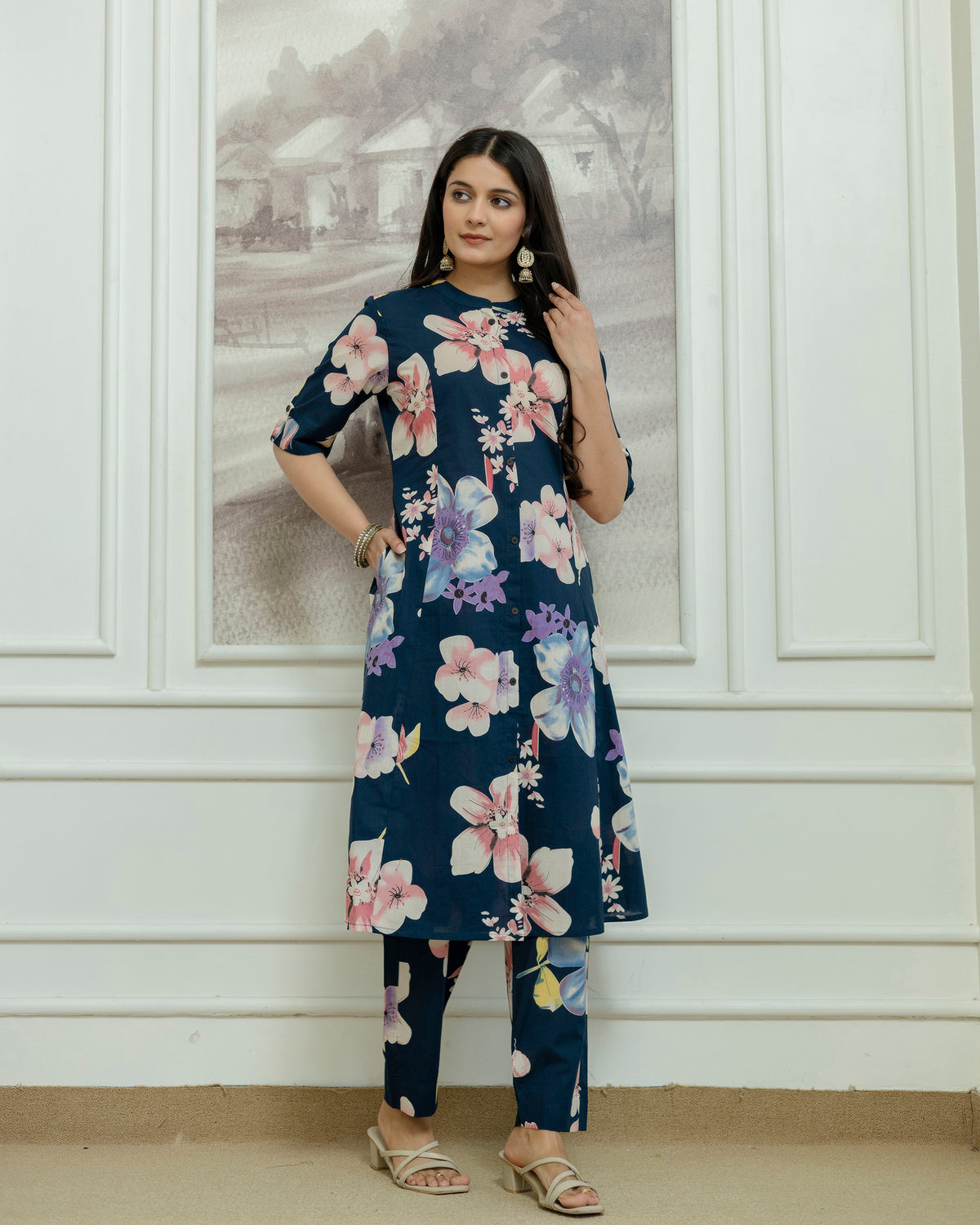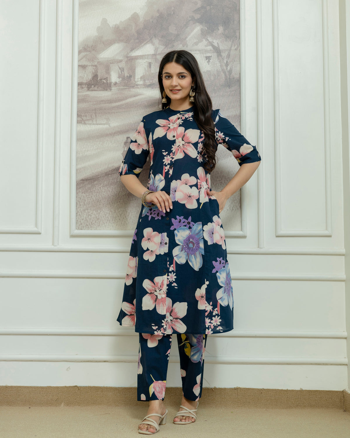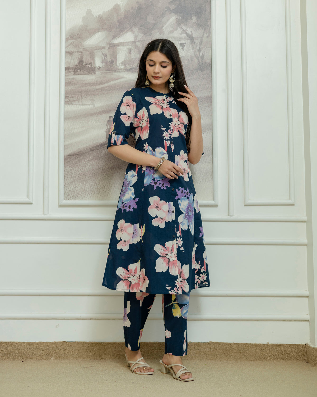 The 'Kusum' Navy Floral A-Line Co-ord Set