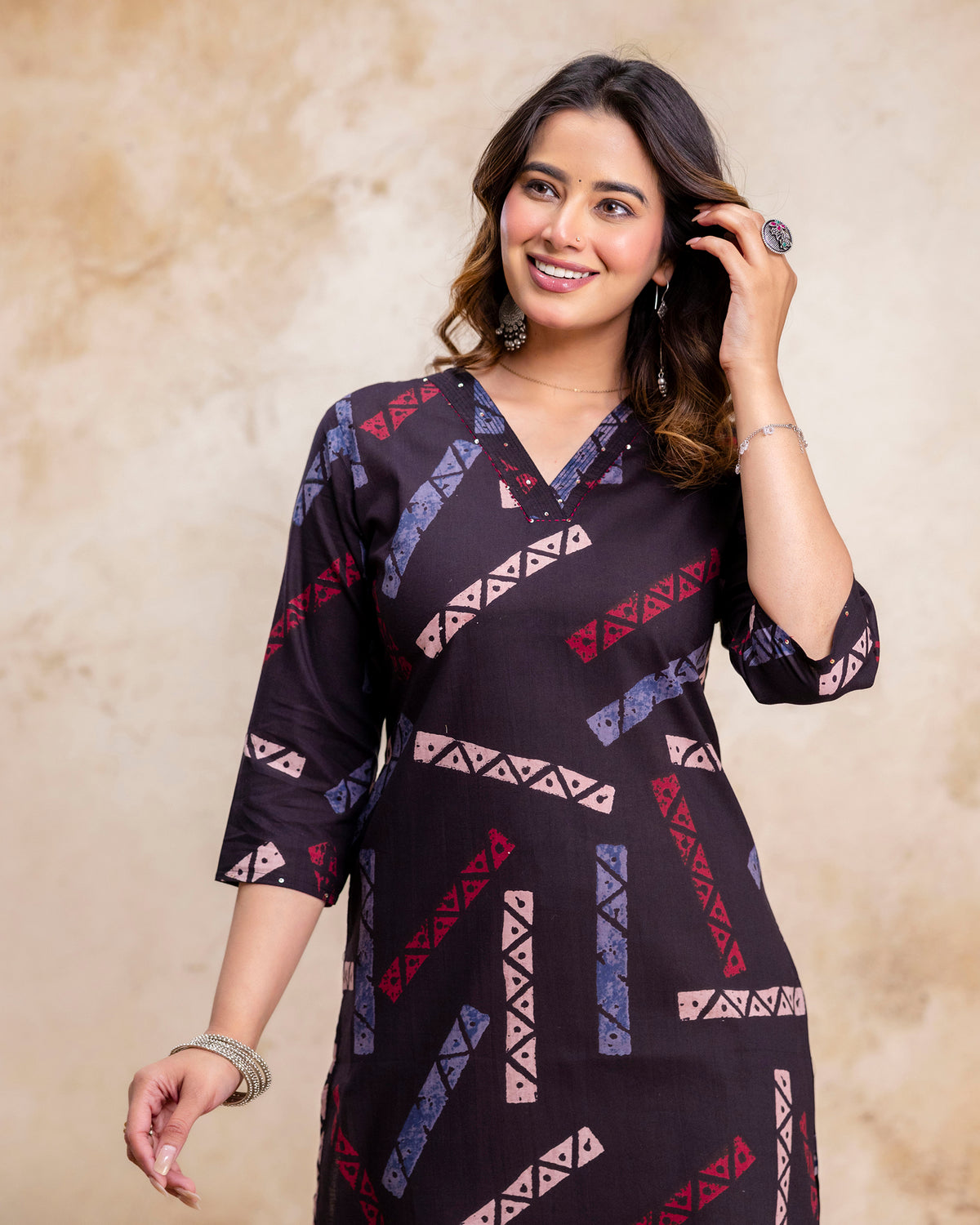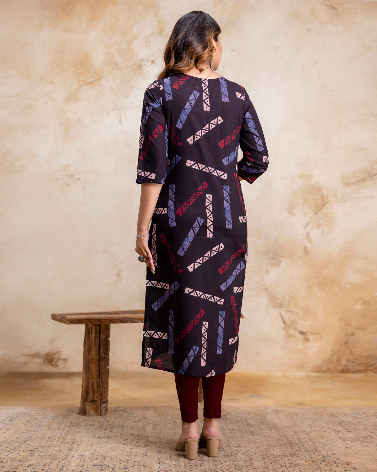 The 'Meera' Noir Tribal Straight Kurta - 38