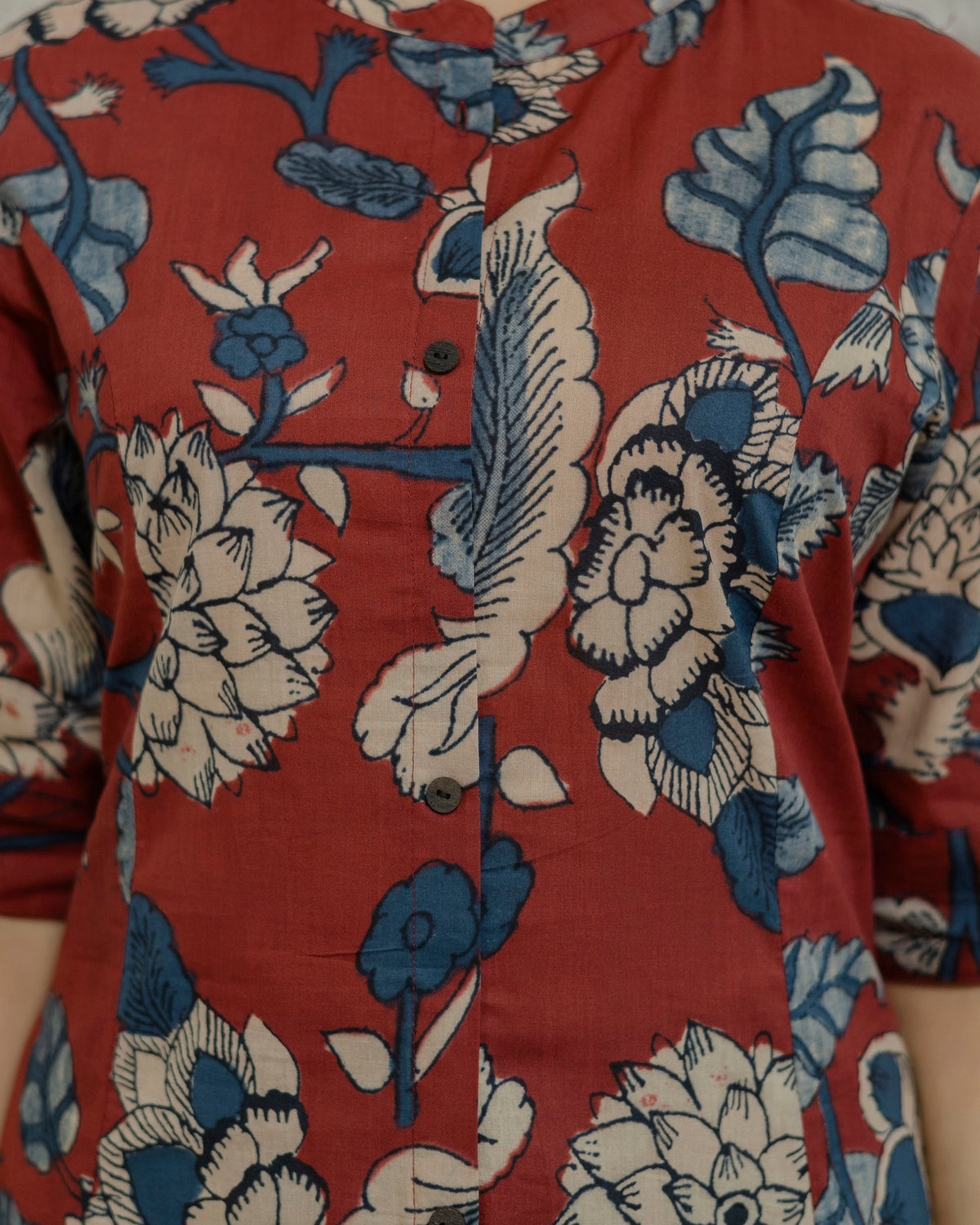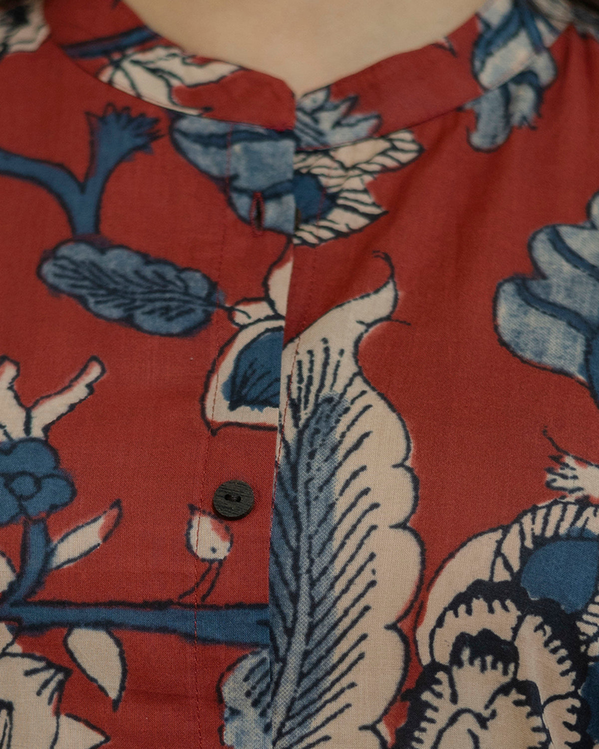 We strongly recommend dry cleaning for the first wash of all hand-printed or block/tie-dyed garments. For subsequent washes, hand wash gently in cold water with a mild detergent and always dry in the shade to preserve the vibrant colours and prevent shrinkage.