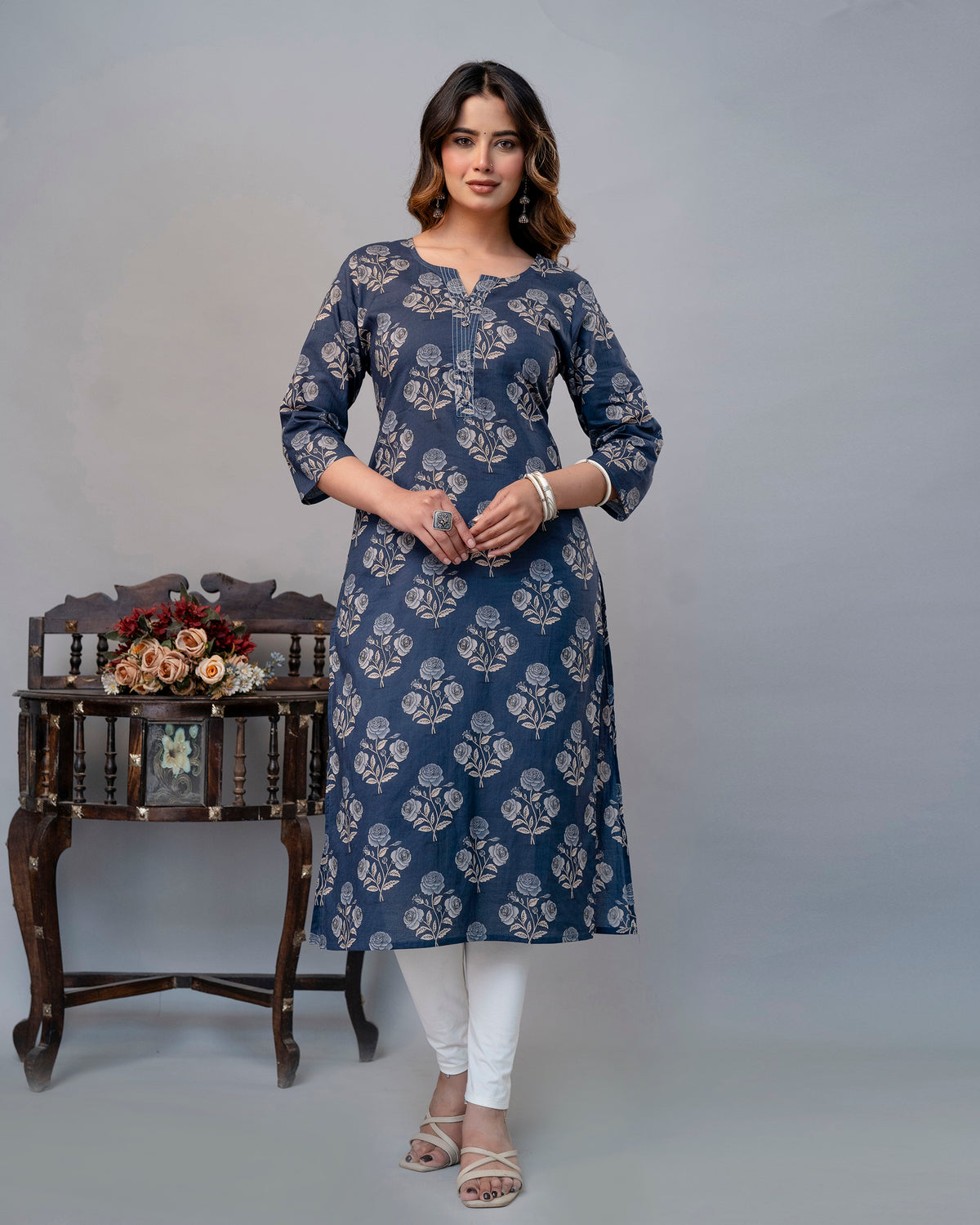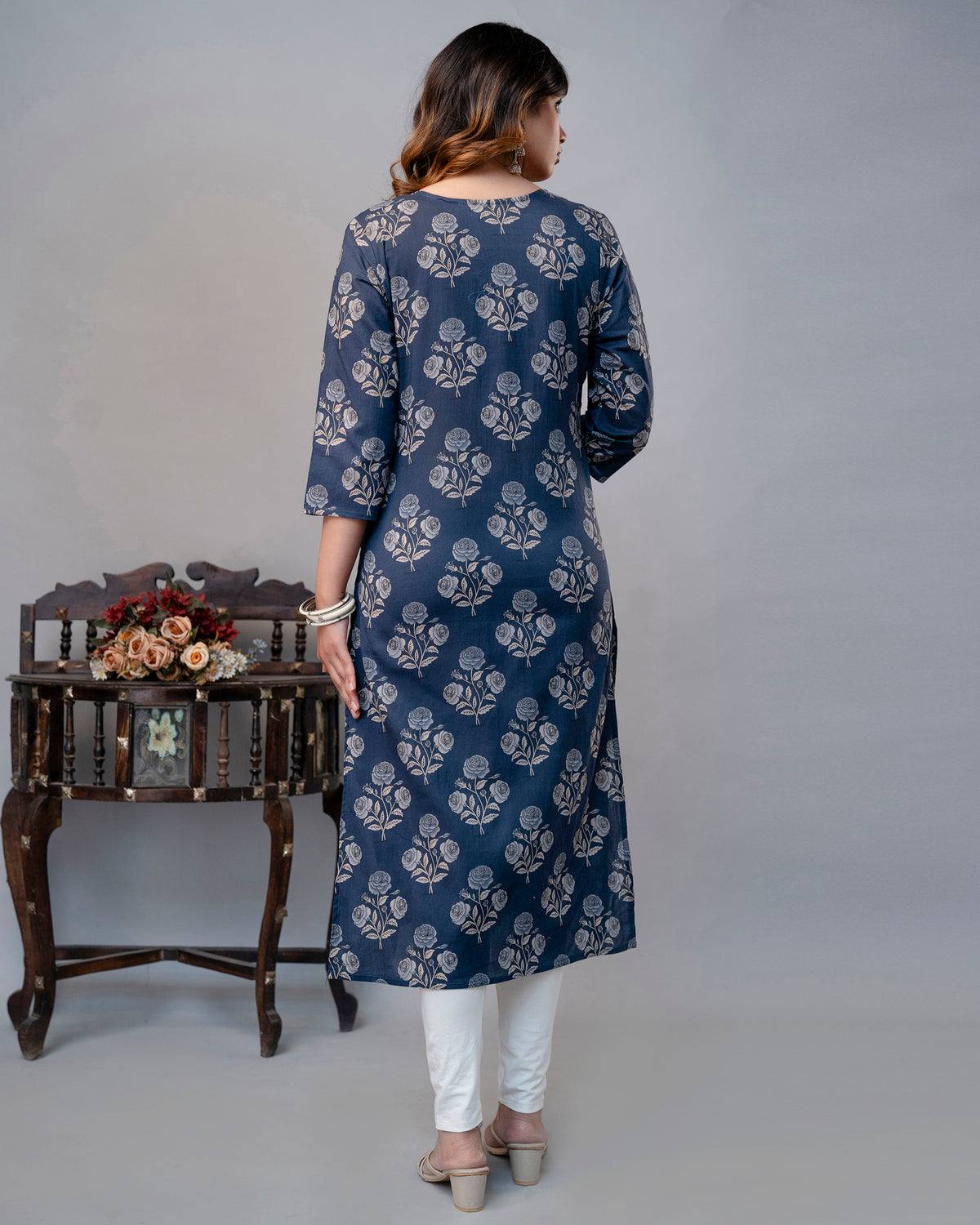 The Dusty Blue Rose Straight Kurta