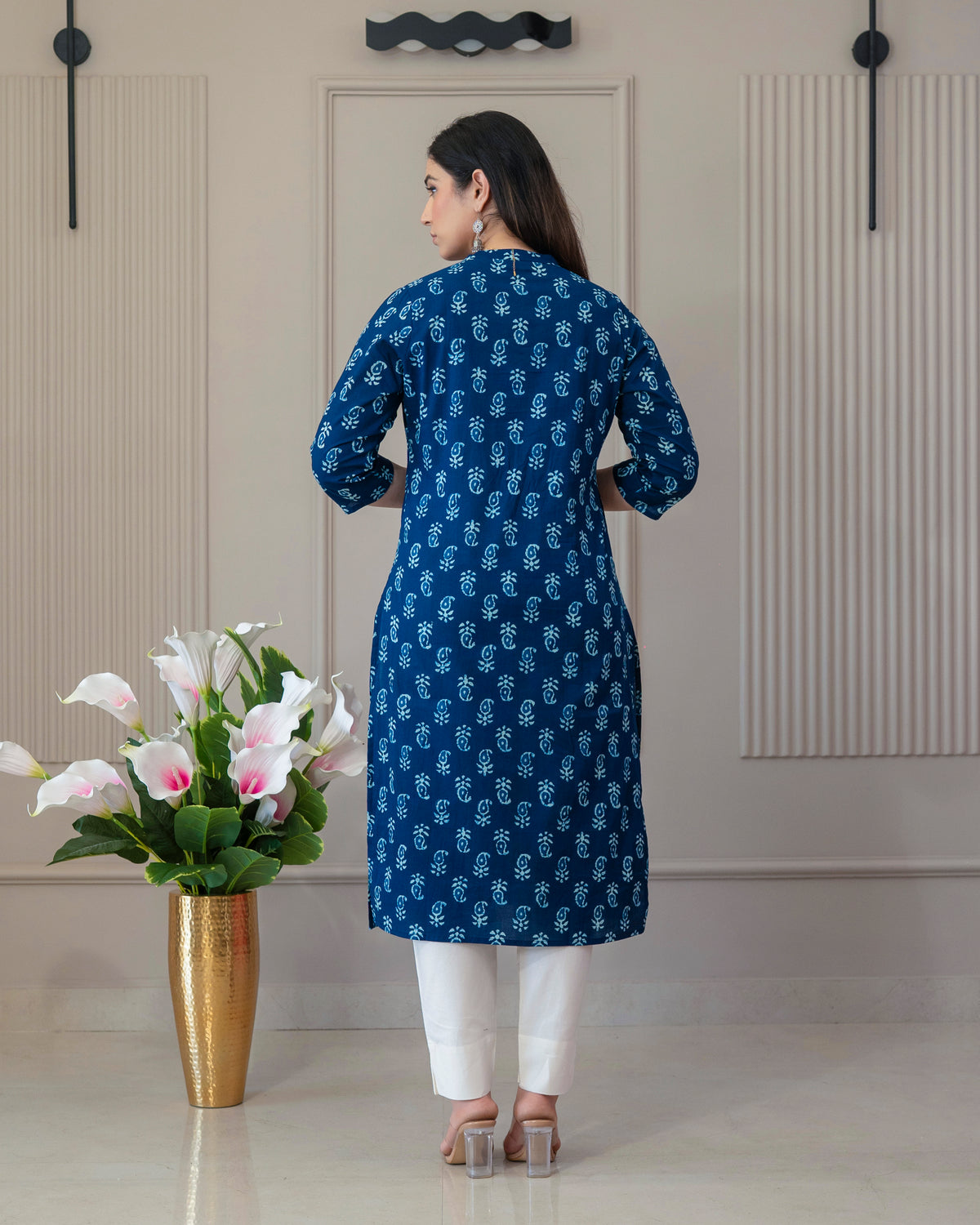 We strongly recommend dry cleaning for the first wash of all hand-printed or block/tie-dyed garments. For subsequent washes, hand wash gently in cold water with a mild detergent and always dry in the shade to preserve the vibrant colours and prevent shrinkage.