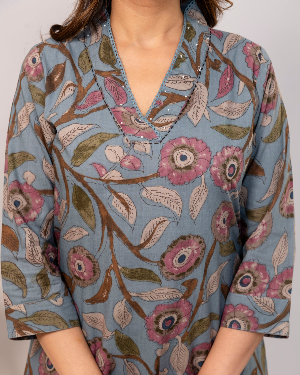We strongly recommend dry cleaning for the first wash of all hand-printed or block/tie-dyed garments. For subsequent washes, hand wash gently in cold water with a mild detergent and always dry in the shade to preserve the vibrant colours and prevent shrinkage.