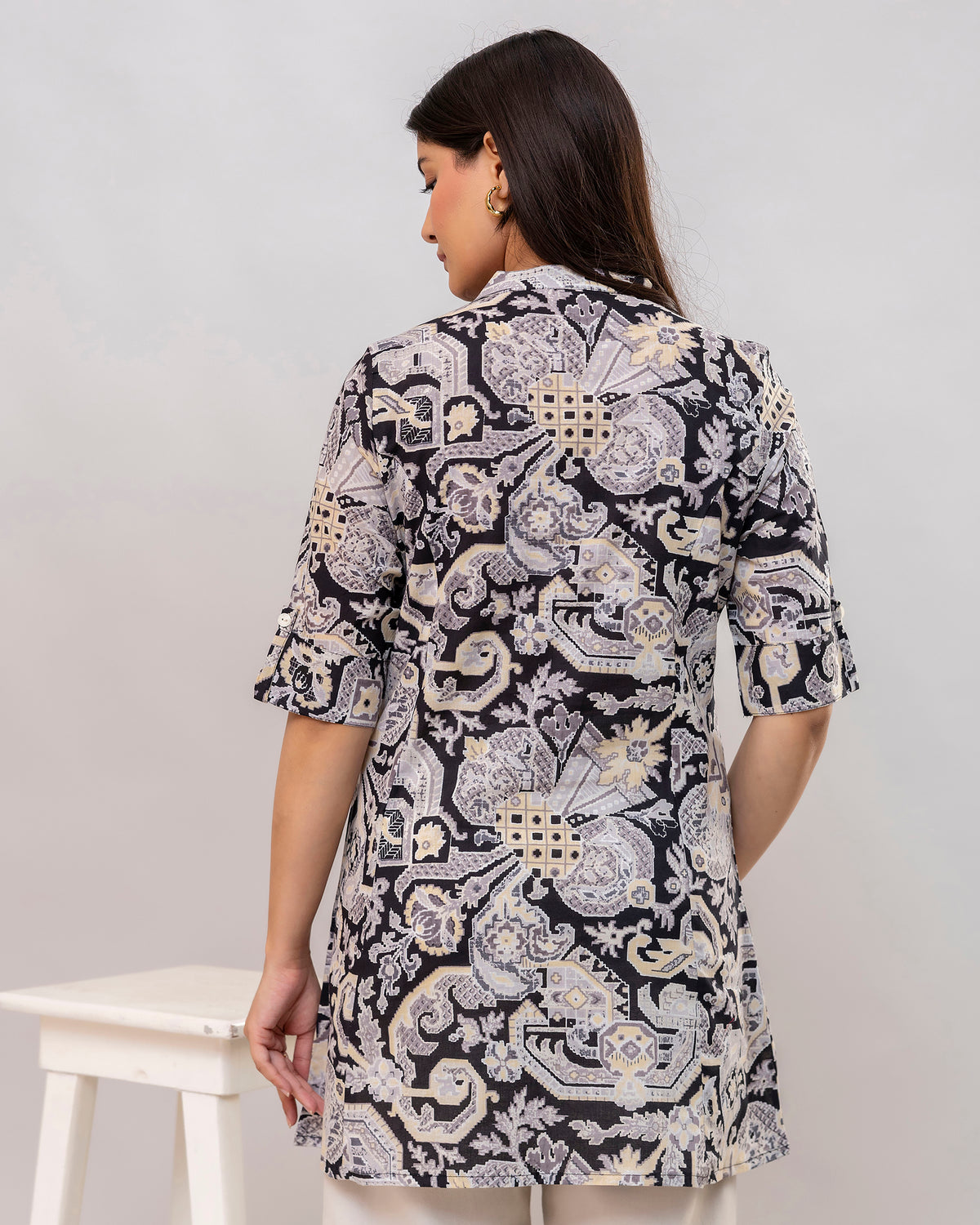 We strongly recommend dry cleaning for the first wash of all hand-printed or block/tie-dyed garments. For subsequent washes, hand wash gently in cold water with a mild detergent and always dry in the shade to preserve the vibrant colours and prevent shrinkage.